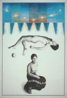| Title: Childhood of Hephaestus; (CONCEPTUAL MULTIPLE EXPOSURE LANDSCAPE SERIES) Artist: Ian Hornak; Medium: Acrylic on Canvas; Size: 68 x 96"; Year: 1977. Owned by Xerox, Inc. |