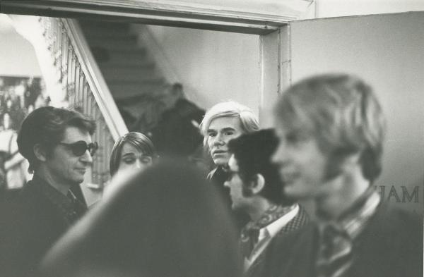 | Ian Hornak right, foreground, Andy Warhol back, center; photo by John Foote © 1971 John Foote, New York, NY. |