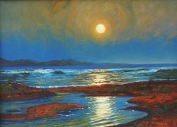 | Title: Moonlight on a Tropical Sea; Artist: Ian Hornak; Size: 8 1/2 x 11 1/2"; Medium: Oil on Panel;Year: 1996; Private Collection |