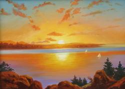 | Title: Hudson River Sunset; Artist: Ian Hornak; Size: 11 1/2 x 15 1/2"; Medium: Oil on Panel;Year: 1996; Private Collection |