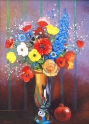 | Title: Les fleurs a la Maniere de Redon Variation VII; Artist: Ian Hornak Size: 15 1/2 x 11 1/2"; Year: 1996 Medium: Oil on Panel; Private Collection |