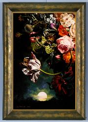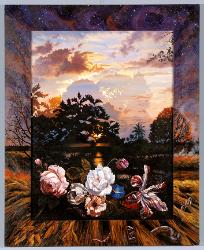 | Title: Baroque Flower Piece with Moonrise; Artist: Ian Hornak; Medium: Oil on Panel; Size: 37 x 27 1/2"; Year: 2000. Provenance: Private Collection |