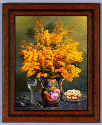 | Title: Mimosa in a Sevres Vase; Artist: Ian Hornak; Medium: Oil on Panel with Artist Painted Frame; Size: 39 1/4 x 32 1/4"; Year: 2000. Provenance: Private Collection |