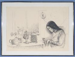 | Title: Marcia Sewing Variation IV; Artist: Ian Hornak; Medium: Pencil on Paper; Size: 35 x 47"; Year: 1979. Provenance: Private Collection |