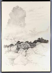 | Title: Rocks, Mist; Artist: Ian Hornak; Medium: Pencil on Paper; Size: 40 x 29 1/2"; Year: 1973. Provenance: Private Collection |